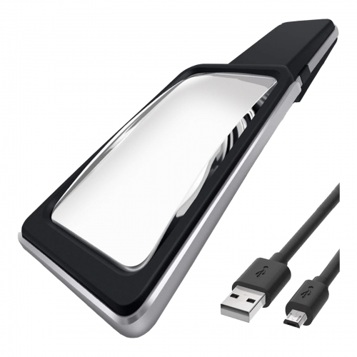10 ultra bright LEDs for reading small text in dark areas. Convenient rechargeable battery (charge via USB cable).Lens size: 4-1/4" x 2-1/2" Up to 48 hrs continuous use Dimmer switch |